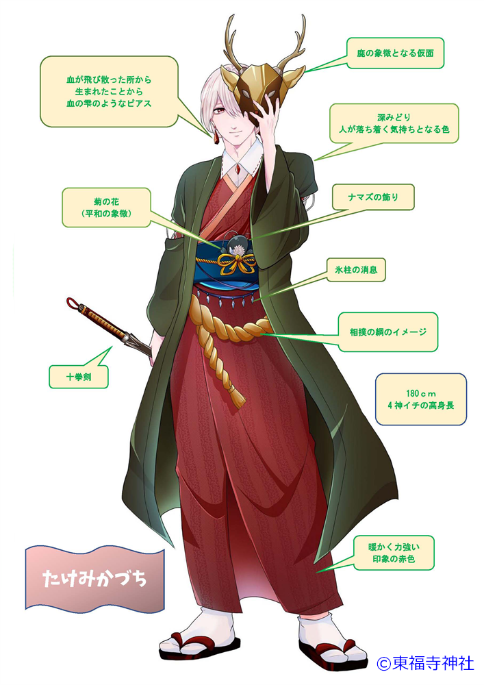 日本神話に登場する神様の一人で、主に戦いや勝利の神様として崇められています。彼は古事記や日本書紀などの古代の文献に記されています。
